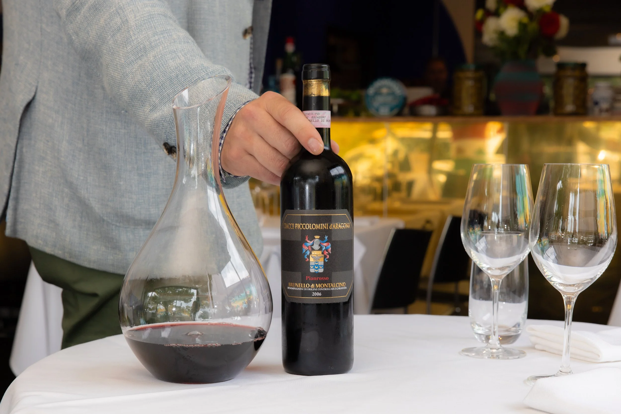 includes a glass of wine,